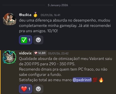 Otimização profissional que ajusta seu Windows, drivers e configurações ocultas para extrair o máximo desempenho do seu PC em jogos competitivos.
